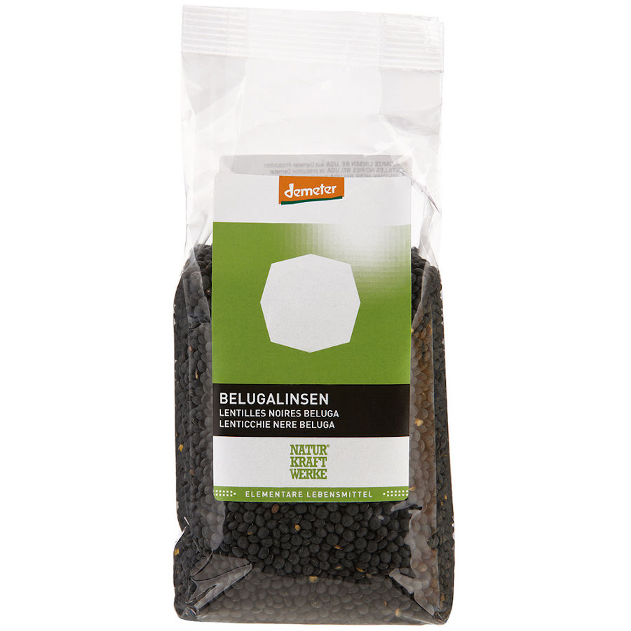 Belugalinsen aus österreichischer Demeter Produktion von NaturKraftWerke. Die feinen Hülsenfrüchte sind keimfähig und eigenen sich für die Anzucht von proteinreichen Keimlingen. Gekocht sind Belugalinsen schön knackig. Gekeimt eignen sie sich perfekt für erfrischende Linsensalate.