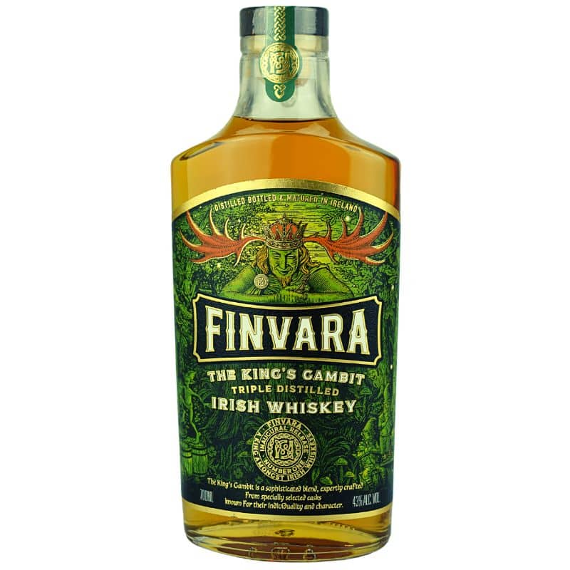 Die elegante Flasche und das Etikett des Finvara The King’s Gambit sind inspiriert von der irischen Mythologie und Natur. Dargestellt wird der Waldkönig, eine Anspielung auf die Daoine Sidhe der irischen Folklore, was den Whiskey nicht nur zu einem Genussmittel, sondern auch zu einem Stück Kultur macht.