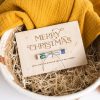 Eine wunderschön illustrierte Klappkarte mit dem Text “Frohe Weihnachten von uns allen!”.