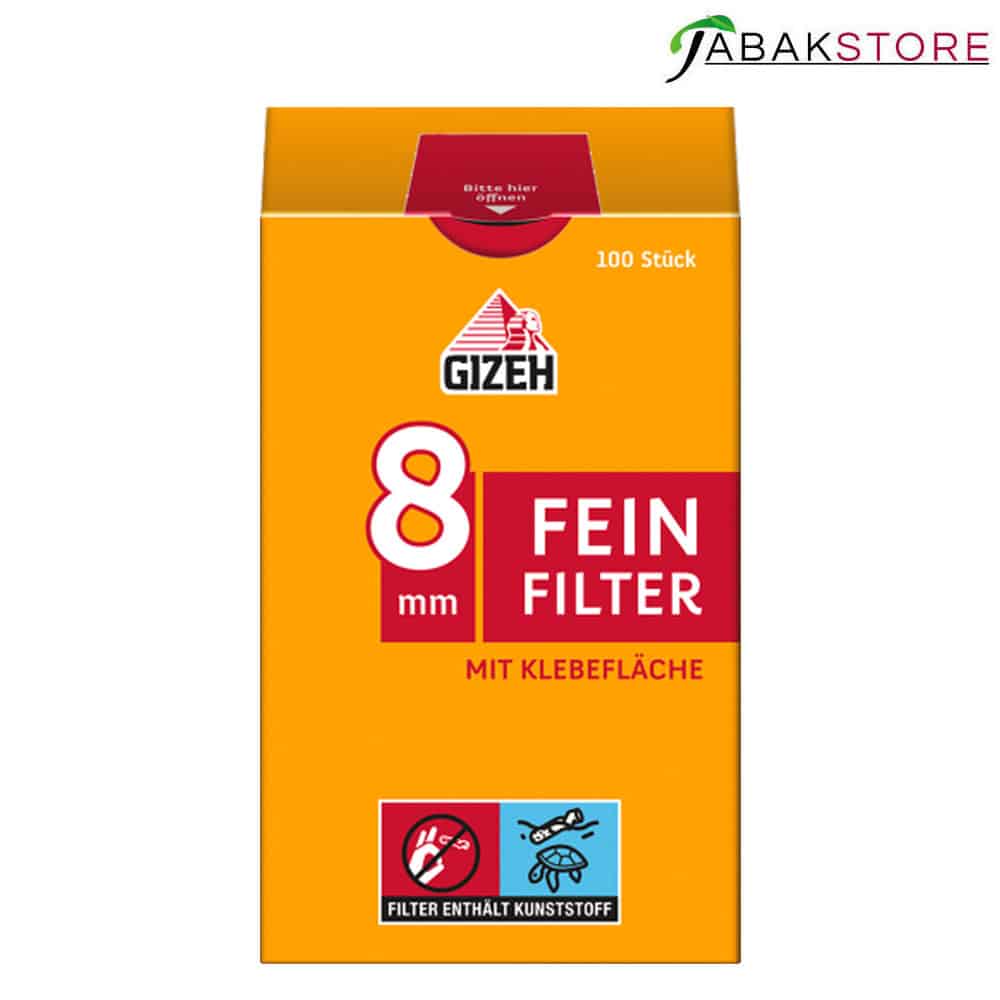 Die GIZEH Feinfilter sind Eindrehfilter mit einem Durchmesser von 8 mm. Um das Drehen zu erleichtern, verfügen die Filter über eine Klebefläche, die mit Lebensmittelfarbe markiert ist. Die Filter sind zu je 100 Stück in einer Packung mit einem praktischen Verschluss verpackt. Die Umverpackung selbst ist Plastikfrei, und kann über dem gewöhnlichen Papiermüll entsorgt werden.
