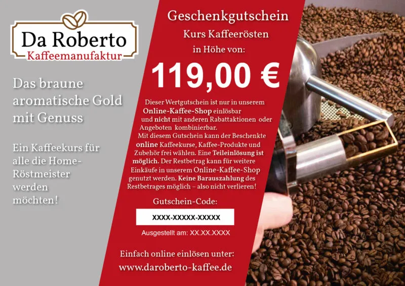 Dann verschenken Sie doch diesen Gutschein für unseren Kurs „Kaffeerösten“.