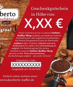 Mit diesem Gutschein verschenken Sie ein großes Stück Kaffeekultur von Da Roberto!