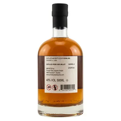 Den Millet Whiskey, 40 % Vol., aus der Koval Distillery erhalten Sie in einer 0,5 l Flasche. Ein Millet Whiskey ist ein Getreide-Whisky (Rye Whiskey) aus Hirse (Millet).